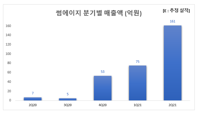 썸에이지 분기별 매출액 추이. 단위 억원. [자료=버핏연구소]