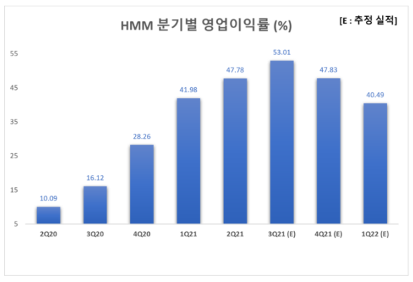 올해 성수기 수요 강세의 영향으로 항만 적체 및 스케줄 지연에 따른 공급 부족으로 HMM은 적어도 연말까진 현재의 고운임 추세가 계속될 것으로 예측되며 물동량보다 운임이 높아 항만 적체 현상이 해소된다면 운임 할증료가 줄어들 가능성이 있어 내년 1분기 비수기에 노선 정상화가 예상된다.