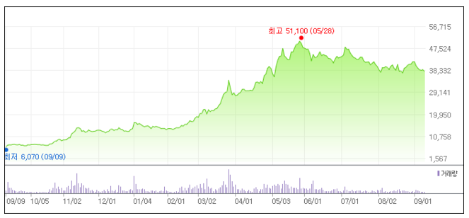 HMM의 최근 1년 주기 추이. [이미지= 네이버 증권]