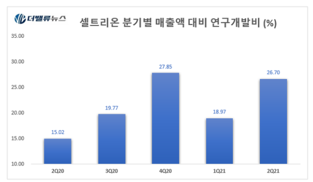 ◆셀트리온, 연구개발비 유일하게 20% 넘어