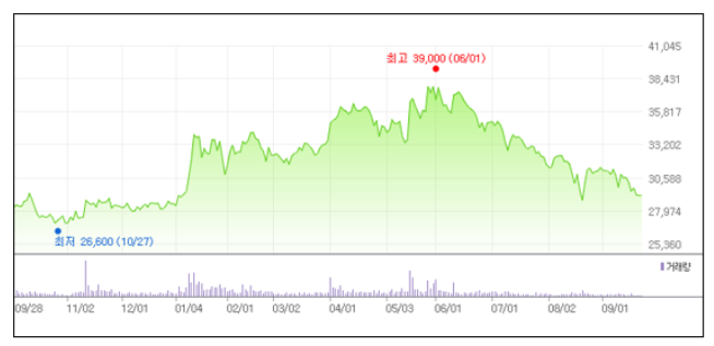 네오팜의 최근 1년 주가 추이. [이미지=네이버 증권]