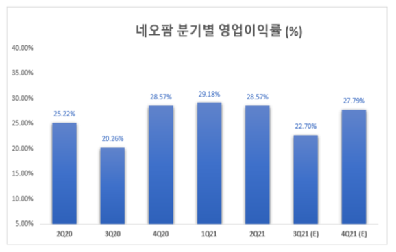 네오팜은 지난해부터 20%가 넘는 높은 영업이익률을 유지하고 있다. 화장품 업종 평균 영업이익률이 약 9~10% 인 것을 감안할 때 2배가 넘는 수치다.