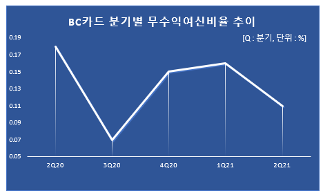 BC카드 분기별 무수익여신비율 추이. [자료=버핏연구소]