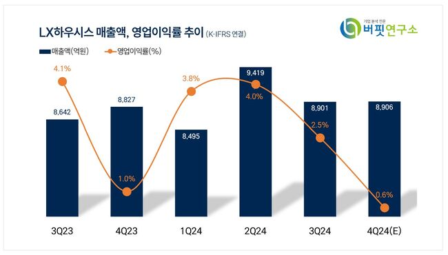 LX하우시스 최근 분기별 매출액 및 영업이익률 추이. [이미지= 버핏연구소]
