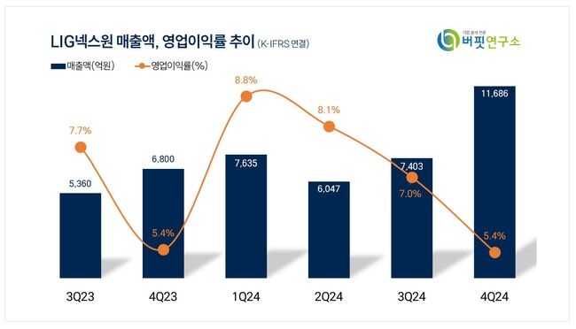 LIG넥스원 최근 분기별 매출액 및 영업이익률 추이. [이미지= 버핏연구소]