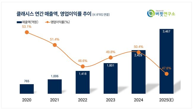클래시스 최근 연간 매출액 및 영업이익률 추이. [이미지= 버핏연구소]
