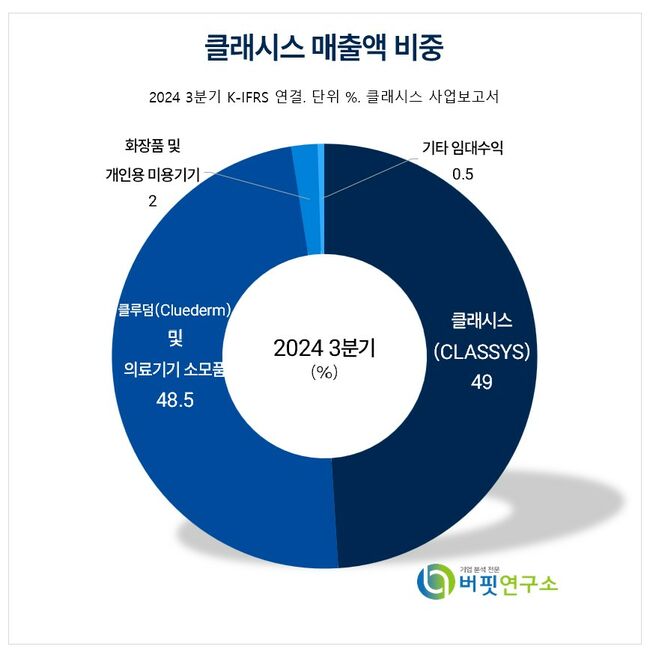 클래시스는 미용목적을 위한 의료기기와 미용기기 그리고 개인용 뷰티 디바이스 및 화장품 사업을 운영하고 있다. 브랜드 내에선 주요 제품인 슈링크, 볼뉴머 등의 장비 누적 판매대수와 사용 횟수가 증가되면서 소모품의 매출이 증가하고 있다.