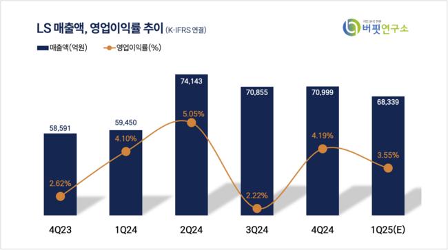장재혁 메리츠증권 연구원은 LS의 1분기 매출액은 6조8339억원(YoY +15%), 영업이익은 2426억원(YoY -1.4%)으로 컨센서스에 부합할 것이라 전망했다.