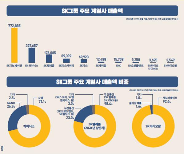 SK그룹 주요 계열사 매출액과 매출액 비중. [자료='대한민국 2025 재계 지도']