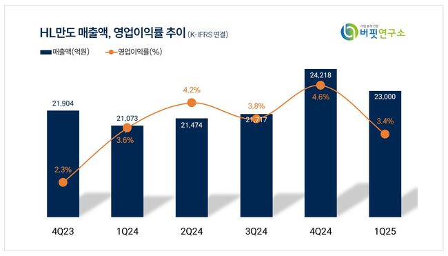 HL만도 최근 분기별 매출액 및 영업이익률 추이. [이미지= 버핏연구소]