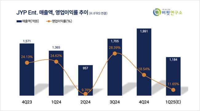 JYP Ent. 매출액 및 영업이익률 추이 [자료=버핏연구소]