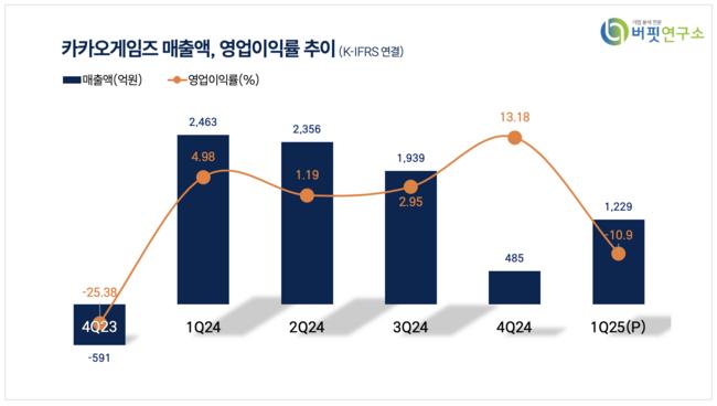 카카오게임즈 최근 분기별 매출액 및 영업이익률 추이 [자료=버핏연구소]
