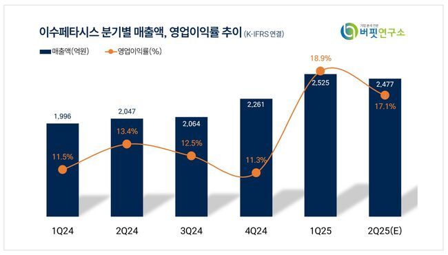 이수페타시스 최근 분기별 매출액 및 영업이익률 추이. [이미지= 버핏연구소]