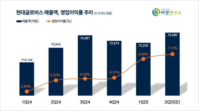 대신증권은 현대글로비스의 2분기 매출액은 7조5580억원(YoY +7.0%), 영업이익은 5380억원(YoY +22.6%)으로 전망했다.