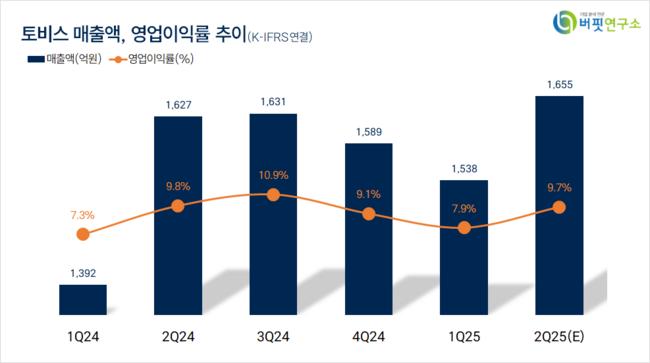 토비스 최근 분기별 매출액, 영업이익률 추이. [자료=버핏연구소]