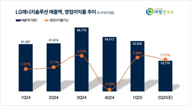 iM증권은 LG에너지솔루션의 2분기 매출액은 5조3770억원(YoY -12.74%), 영업이익은 2890억원(YoY +47.98%)을 기록할 것으로 예상했다.