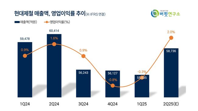 현대제철 최근 분기별 매출액 및 영업이익률 추이. [이미지= 버핏연구소]
