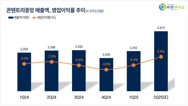끝으로 “콘텐트리중앙에 대해 투자의견 매수를 유지하고 목표주가를 기존 대비 25% 상향한 1만5000원을 제시했다”며 “방송 부문은 예능 제작 강화와 글로벌 OTT 협력 확대가 본격화되고 한한령 해제로 중국 수출이 재개되면 추가 성장 여력이 있다”라고 설명했다.