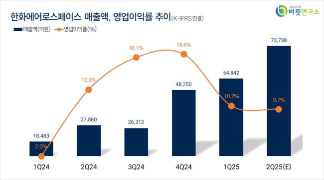 한화에어로스페이스. 매출액 및 영업이익률. [자료=버핏연구소]