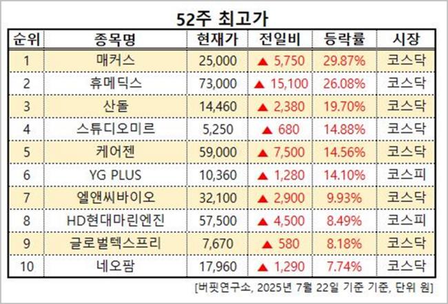 [52주 최고가] 매커스, 전일비 29.87%↑… 현재가 2만5000원