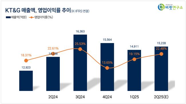 KT&G 최근 분기 매출액 및 영업이익률 추이. [자료=버핏연구소]