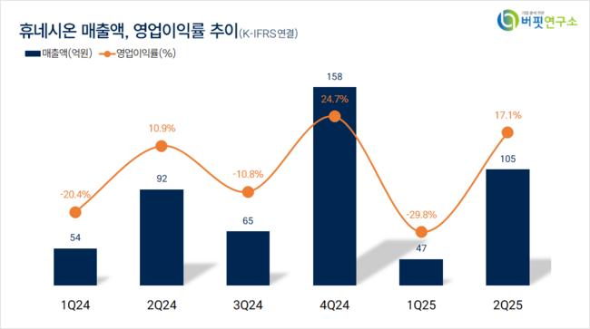 휴네시온은 지난 2분기 매출액 105억원, 영업이익 18억원을 기록하며 전년동기대비 매출액은 14.13%, 영업이익은 80% 증가했다(K-IFRS 연결).
