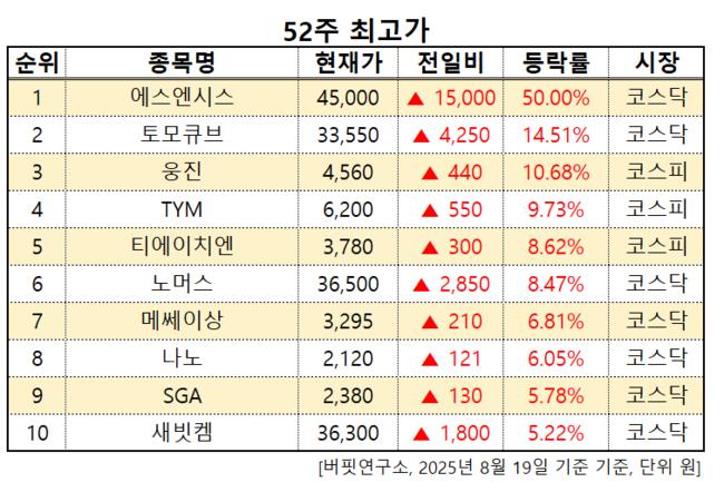 [52주 최고가] 에스엔시스, 전일비 50.00%↑… 현재가 45000원