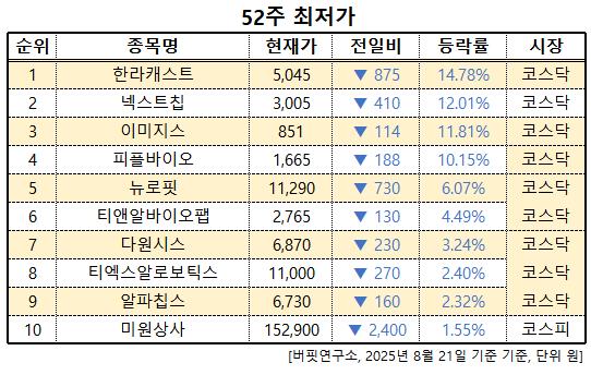 [52주 최저가] 한라캐스트 14.78% ↓...현재가 875원