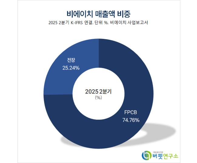 비에이치는 FPCB와 응용부품을 제조하고 차량용 무선충전기를 개발한다. 베트남에 유일한 전공정 생산라인을 구축했고 RF-PCB(고주파 회로 기판) 양산 노하우와 최대 생산량을 보유하고 있다.