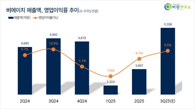 양승수 메리츠증권 애널리스트는 “내년과 2027년 영업이익은 각각 1033억원(전년동기대비 +86.4%), 1126억원(전년동기대비 +29.6%)일 것”이라며 “내년부터 시작될 세 가지 변화가 비에이치의 가파른 실적 성장을 견인할 것”으로 전망했다.