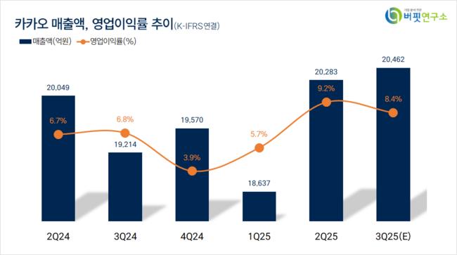 카카오 최근 분기별 매출액 및 영업이익률 추이. [자료=버핏연구소]