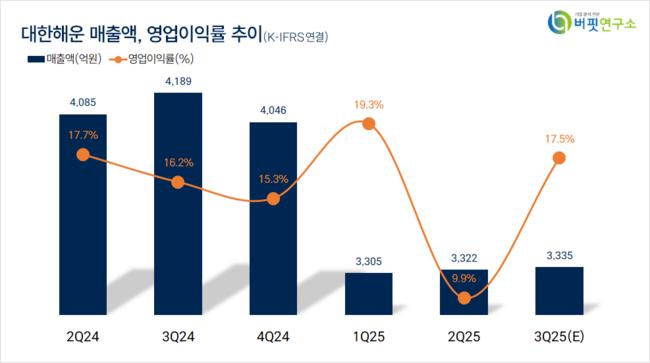 대한해운 최근 분기별 매출액, 영업이익률 추이. [자료=버핏연구소]