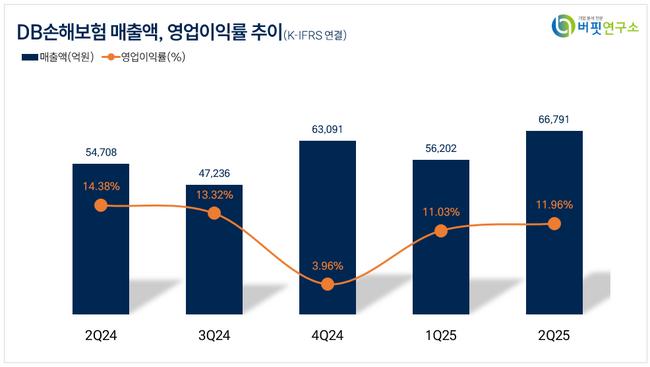 DB손해보험 매출액 및 영업이익률. [자료=버핏연구소]