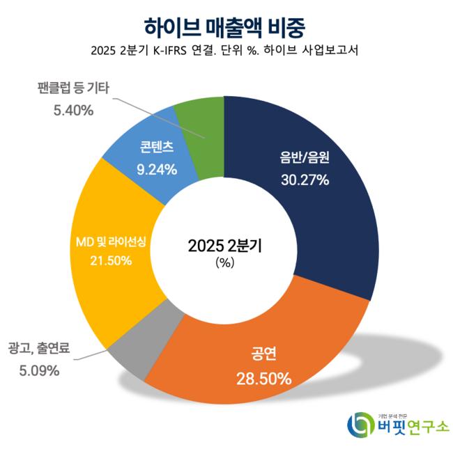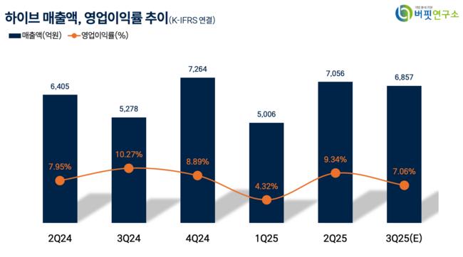 최민하 삼성증권 애널리스트는 “3분기 연결 매출액은 6958억원(전년동기대비 +31.8%), 영업이익은 336억원(전년동기대비 -38.1%)으로 컨센서스를 밑돌 전망”이라며 “BTS 진의 팬콘 투어, 세븐틴·투모로우바이투게더·엔하이픈·르세라핌 등의 월드투어로 공연 및 MD 매출은 호전되지만, 신인 코르티스(Cortis) 데뷔비용과 라틴 프로젝트 제작비 반영으로 수익성이 둔화될 것”이라고 분석했다.
