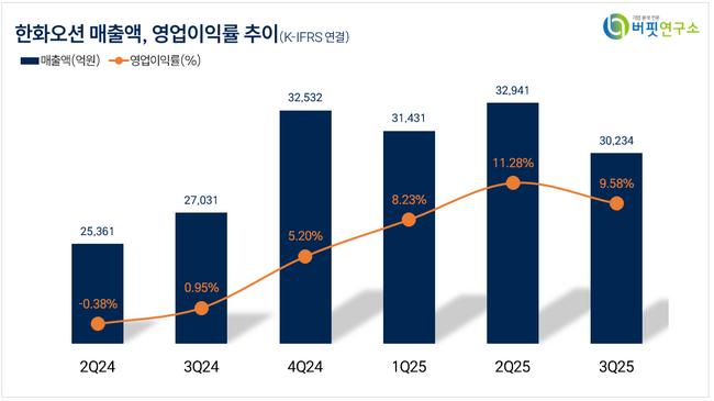 한화오션 매출액 및 영업이익률. [자료=버핏연구소]