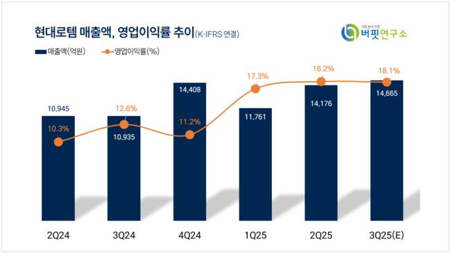 현대로템은 3분기 매출액 1조6196억원(전년동기대비 +48.1%), 영업이익 2778억원(전년동기대비 +102.1%)으로 전년비 급증세가 지속되고 있다. 이는 폴란드 K2 수출 증가에 따른 디펜스 솔루션 부문 실적 증가 영향이다.