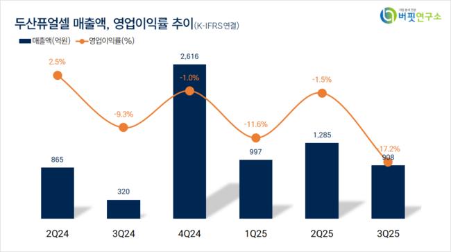 두산퓨얼셀. 매출액 및 영업이익률. [자료=버핏연구소]
