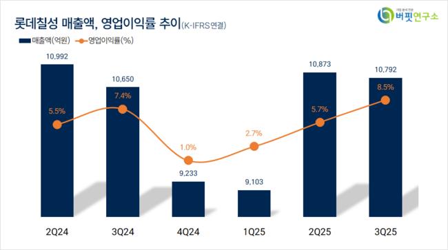 롯데칠성. 매출액 및 영업이익률. [자료=버핏연구소]