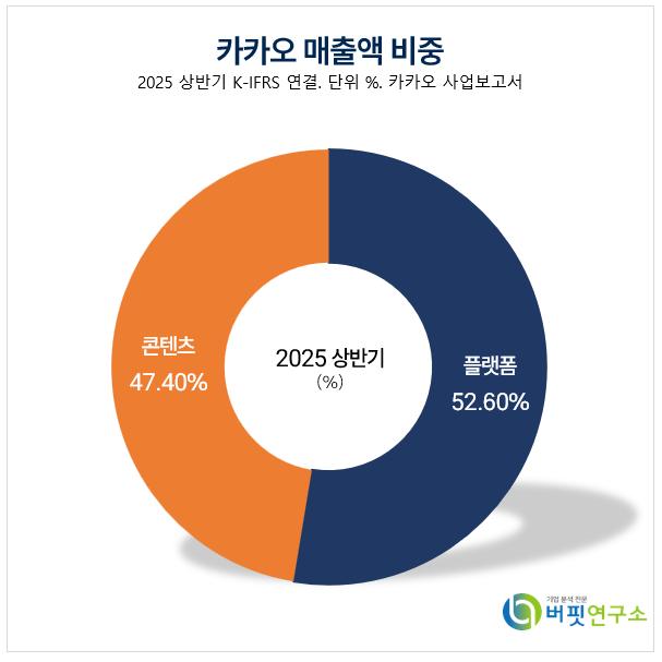 카카오 매출액 비중. [자료=버핏연구소] 그는 “2026년 광고 매출은 1조5000억원으로 예상되며, 경기 회복과 커머스 성장, 챗지피티 포 카카오(ChatGPT for Kakao) 도입 효과로 플랫폼 체류시간이 늘어나며 광고 단가 상승이 기대된다”고 덧붙였다.