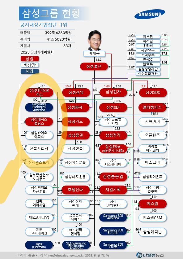 삼성그룹 지배구조. 2025. 6. 단위 %. [자료=공정거래위원회]