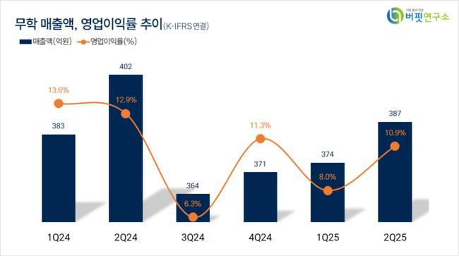 무학은 지난 2분기 매출액 387억원, 영업이익 42억원으로 전년동기대비 매출액은 3.73%, 영업이익은 19.23% 감소했다(K-IFRS 연결).