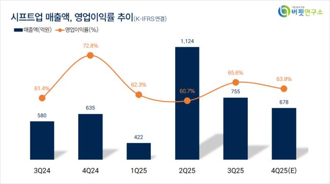 시프트업 매출액 및 영업이익률. [자료=버핏연구소]