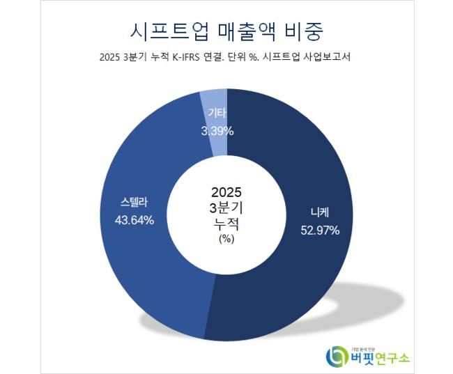 남효지 SK증권 애널리스트는 “시프트업은 2013년 12월 아트디렉터였던 김형태 대표가 설립한 게임 개발사로 지난해 7월 코스피에 상장했다”며 “주요 게임은 ‘승리의 여신: 니케’(2022년 11월 글로벌, 올해 5월 중국 출시), ‘스텔라블레이드’(지난해 4월 PS5 출시, 올해 6월 스팀 출시)가 있고 올해 3분기 누적 기준 매출 비중은 각각 53%, 44%”라고 전했다.