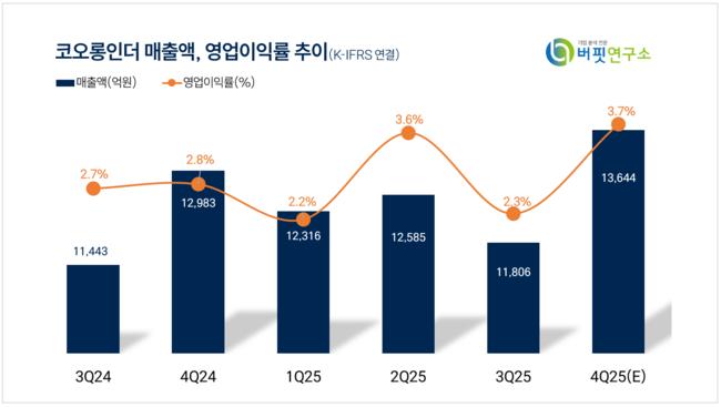 황규원 유안타증권 애널리스트는 코오롱인더의 내년 영업실적이 4개년 만에 1500억원 박스권을 상향 돌파할 것이라고 내다봤다. 내년 예상 실적은 매출액 5조2000억원, 영업이익 2011억원, 지배주주 순이익 1605억원이라고 봤다.