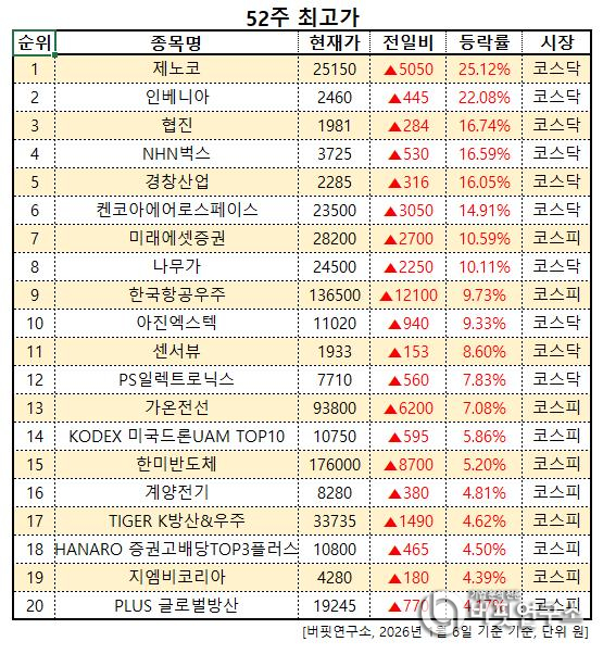 52주 최고가. [이미지=버핏연구소]