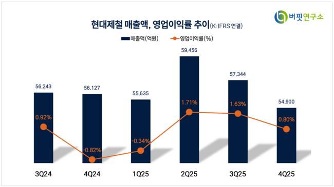 김현태 BNK투자증권 애널리스트는 “현대제철의 4분기 별도 영업이익은 1057억원을 기록하며 컨센서스를 상회했다”고 밝혔다.