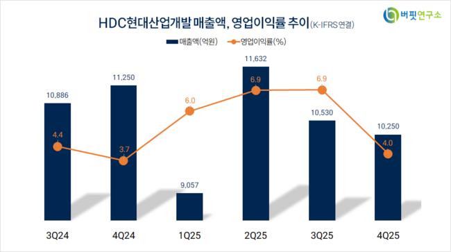 HDC현대산업개발. 매출액 및 영업이익률. [자료=버핏연구소]