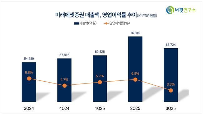 미래에셋증권 매출액 및 영업이익률 추이. [자료=버핏연구소]