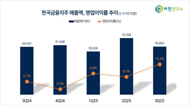 한국금융지주 매출액 및 영업이익률 추이. [자료=버핏연구소]