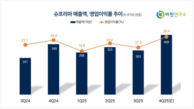 슈프리마 매출액 및 영업이익률 추이. [자료=버핏연구소]